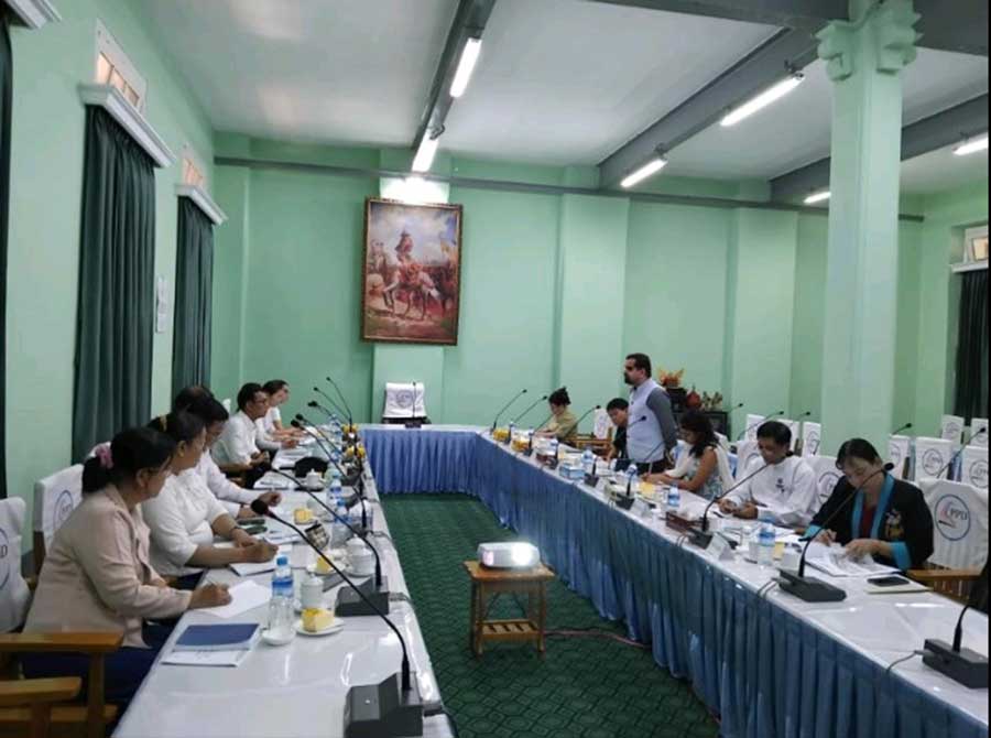 ပြန်ကြားရေးဝန်ကြီးဌာန၊ ပုံနှိပ်ရေးနှင့်ထုတ်ဝေရေးဦးစီးဌာနနှင့် အိန္ဒိယနိုင်ငံအစိုးရတို့အကြား စာဆို ဗိမာန် တည်ဆောက်ခြင်းစီမံကိန်းသဘောတူညီချက် (Project Agreement) ပါ JPMC (Joint Project Monitoring Committee) အဖွဲ့၏ ဆဋ္ဌမအကြိမ် လုပ်ငန်းညှိနှိုင်းအစည်းအဝေးကို ၁၁-၂-၂၀၂၆ (ဗုဒ္ဓဟူး) နေ့ မွန်းလွဲ ၁ : ၀၀ နာရီတွင် ရန်ကုန်မြို့၊ သိမ်ဖြူလမ်းရှိ ပုံနှိပ်ရေးနှင့် ထုတ်ဝေရေးဦးစီးဌာန၌ ကျင်းပခဲ့ပါသည်။