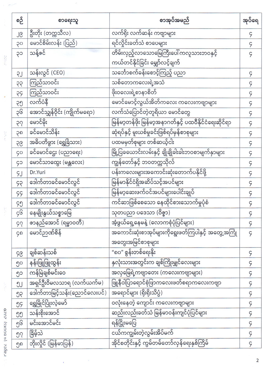 • စာပေဗိမာန်ထုတ် စာအုပ်များ